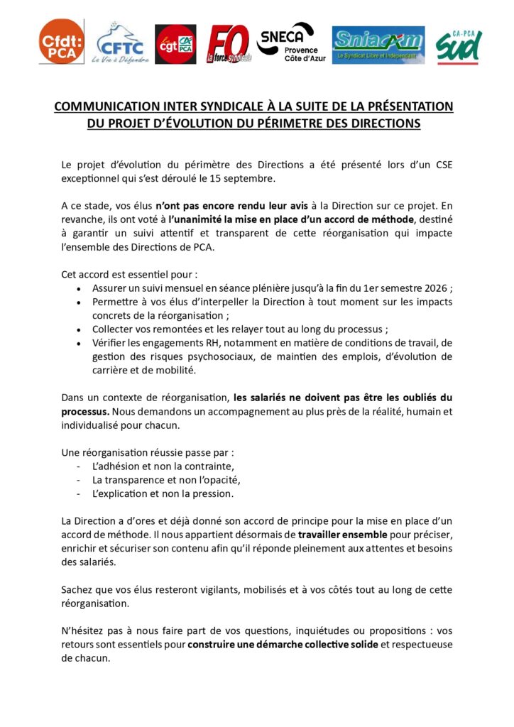 COMMUNICATION INTER SYNDICALE À LA SUITE DE LA PRÉSENTATION DU PROJET D’ÉVOLUTION DU PÉRIMETRE DES DIRECTIONS Posted on 19 septembre 2025 Publié dans Actualités du CA, Communications syndicales No Comments